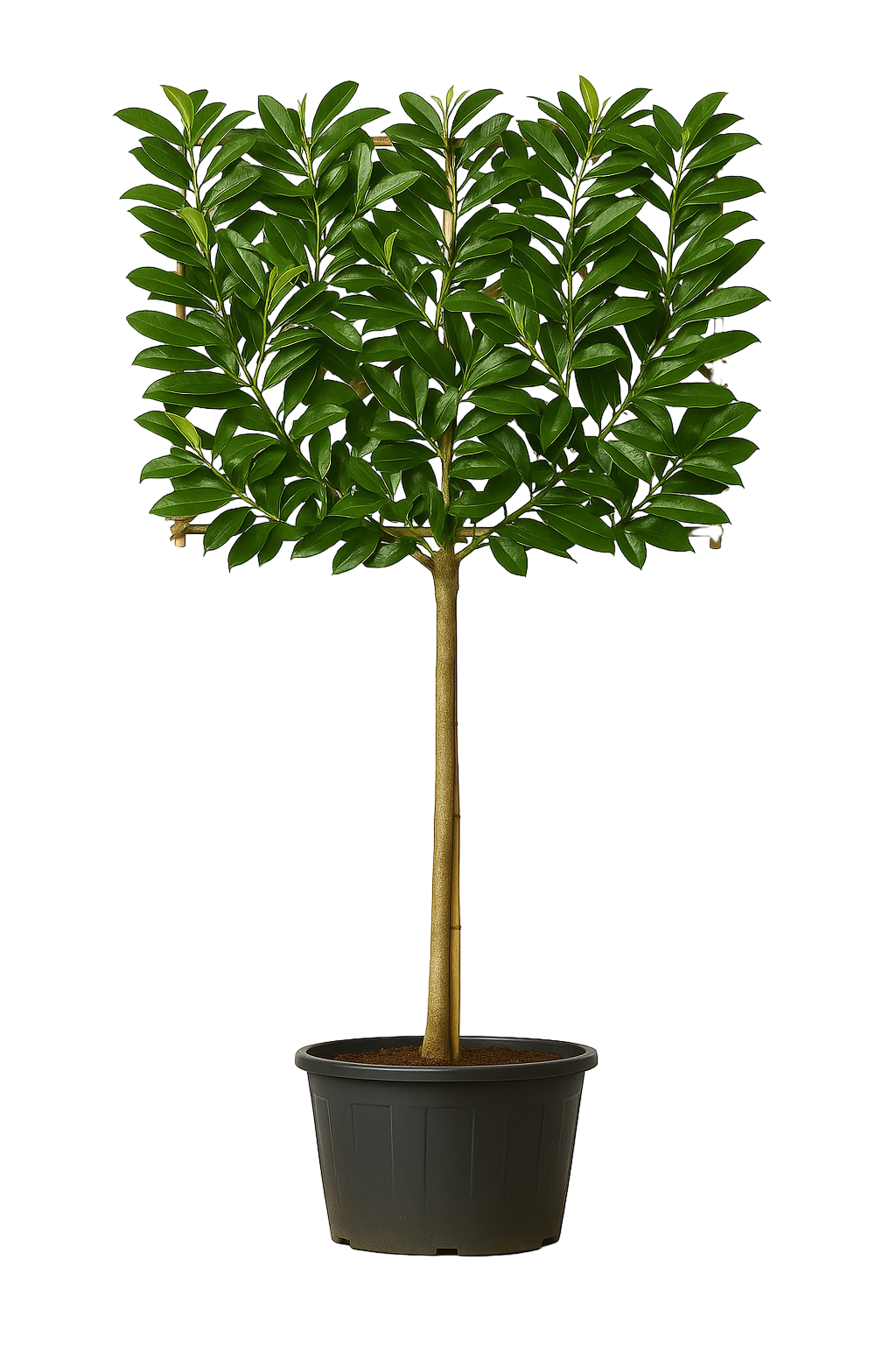 Laurowiśnia 'Novita' wyprowadzona w unikalnej formie żywopłotu na pniu. Posiada jeden prosty, mocny pień oraz rozpostartą na nim płaską koronę niczym „żywopłot na palach”. Taka forma łączy zalety żywopłotu i drzewa: osłania jak wysoki żywopłot, a jednocześnie wygląda elegancko i nie zabiera przestrzeni rabatom pod spodem.